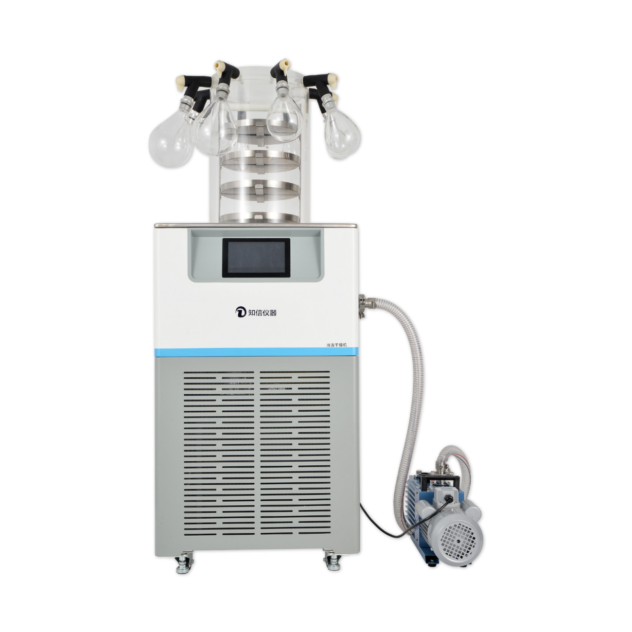 同時最多掛瓶為8個,分為以下4種規(guī)格:500ml、250ml、100ml、50ml,可根據(jù)需要自由組合,凍干過程中可隨時更換凍干瓶,