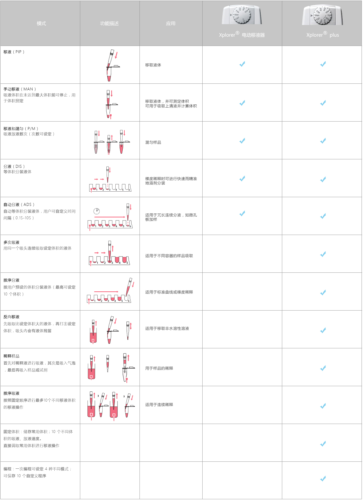Xplorer? /Xplorer? plus 電動移液器可自動移取體積 0.5 μL—10 mL 的液體。其降低了手動移液誤差風(fēng)險,移液更精準,且操作方便(據(jù)統(tǒng)計,5 分鐘內(nèi)可掌握操作)。中文彩色界面、幫助選項、用戶調(diào)節(jié)功能、RFID 數(shù)據(jù)讀寫等功能提高您的使用體驗。